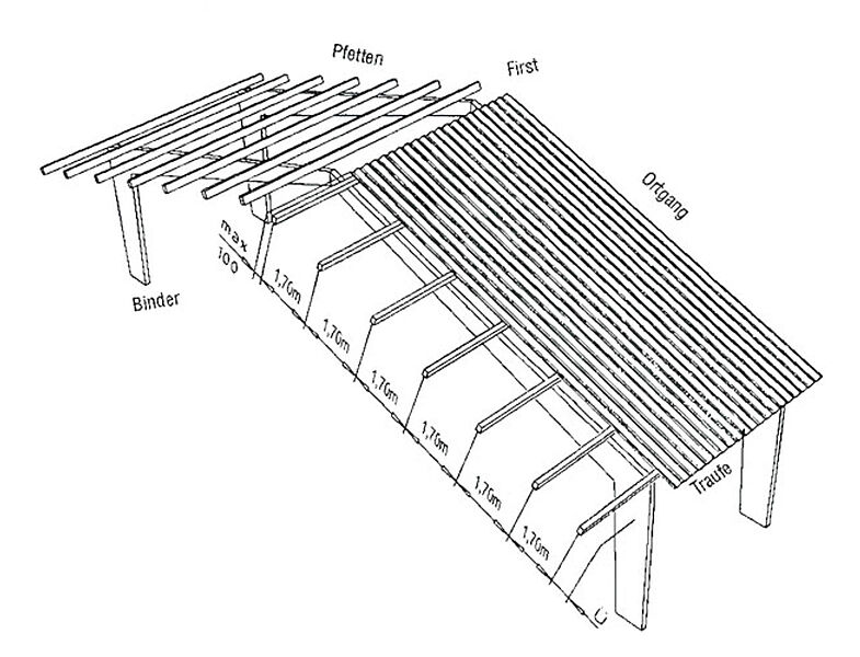 Der Einsatzbereich von Trapezblechen ist im Normalfall eine Bedachung mit sehr geringer Dachneigung bzw. einer sehr leichten Dachunterkonstruktion.